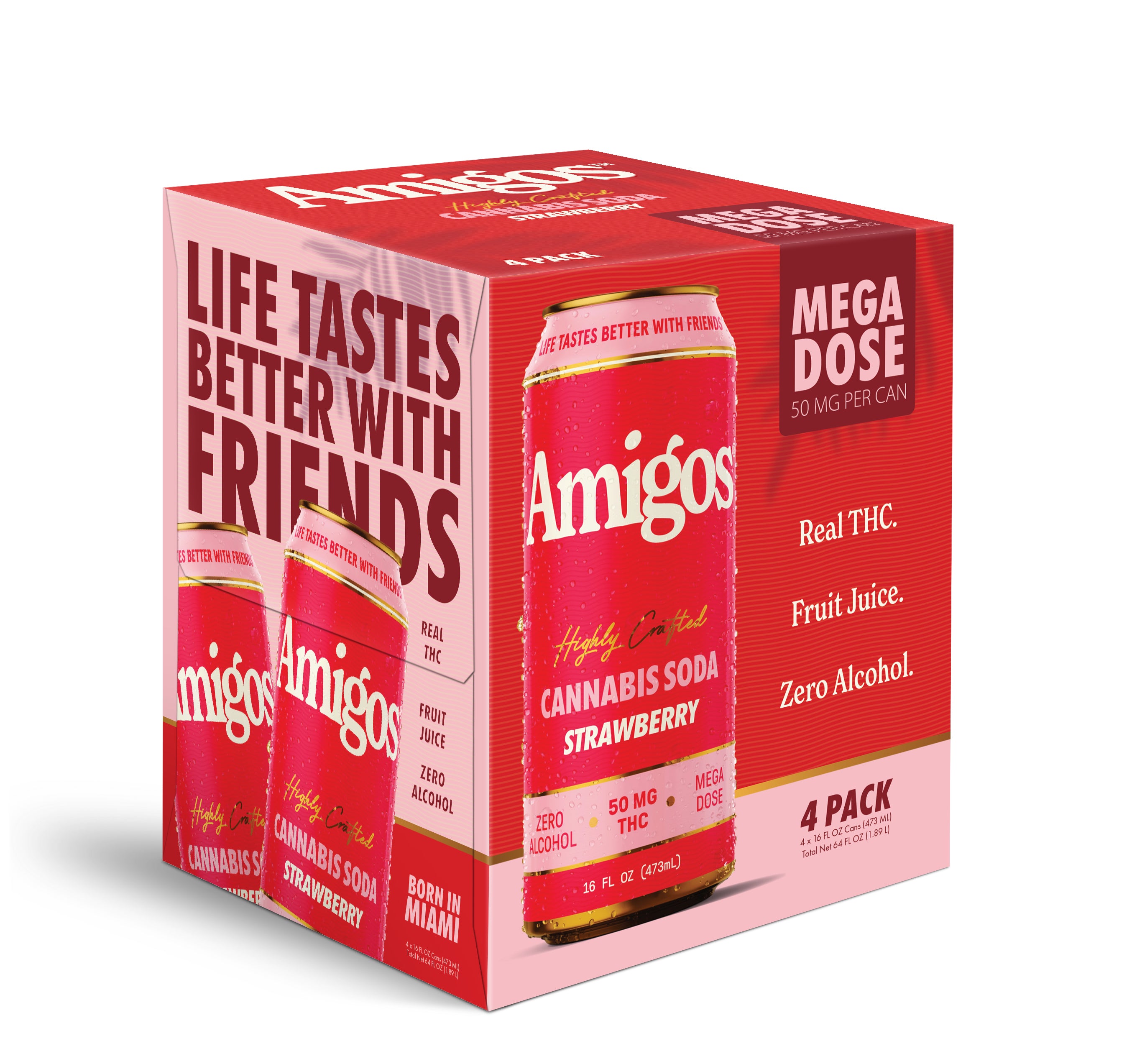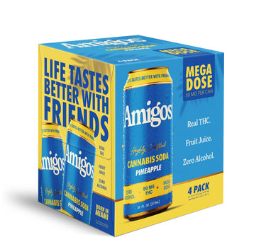 Amigos sodas blend the vibrant flavor of fresh, juicy pineapple or ripened strawberries with a touch of natural sweetness and a splash of effervescent carbonation. Crafted for the perfect balance, this modern refreshment features real fruit juice and a hi dose of 50mg of THC, making it the ideal drink for those seeking serious relaxation.